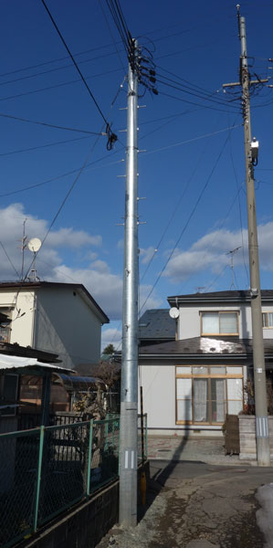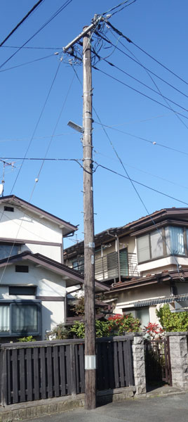 最初に発見した木製電力柱。発見後3ヶ月ちょっとで交換されてしまったので、