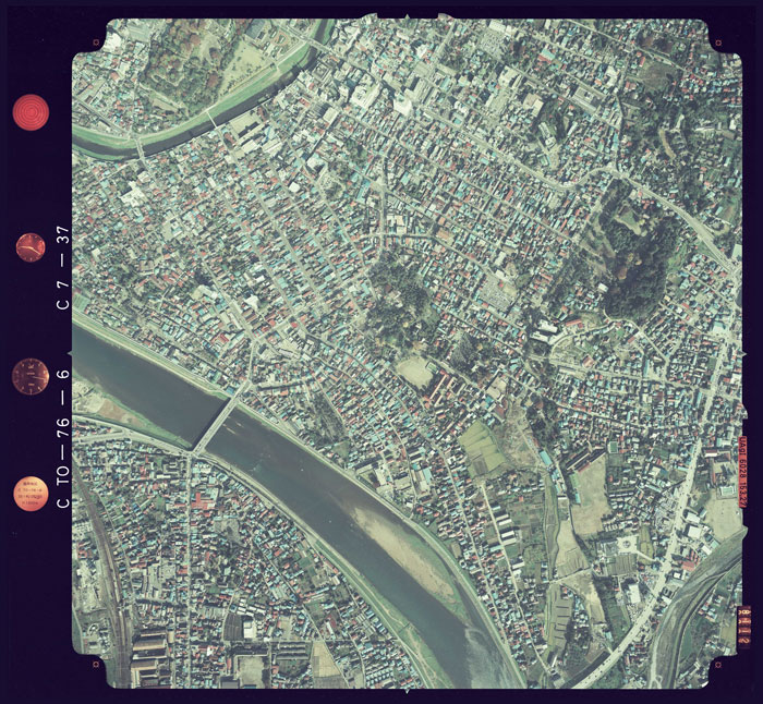 以上3枚の、鉈屋町周辺を含む写真データは購入しました。本当は盛岡市全体を、高解像度で揃えたいところですが、1枚4,539円+送料940円もしますので、さすがにちょっと・・。その他の航空写真はダウンロードで済ませています。