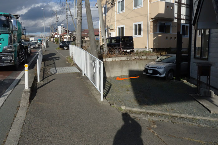 国道4号線盛岡バイパス側から、今通った道を見返しています。