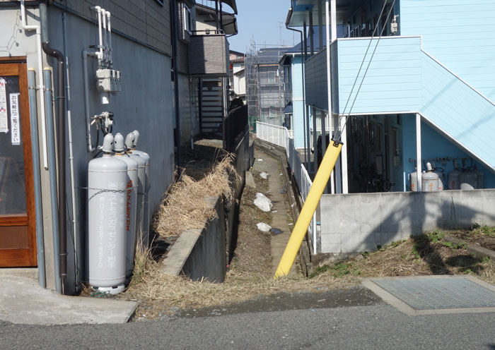 道路を超えて延長線上に、いかにもな水路跡が現れました。