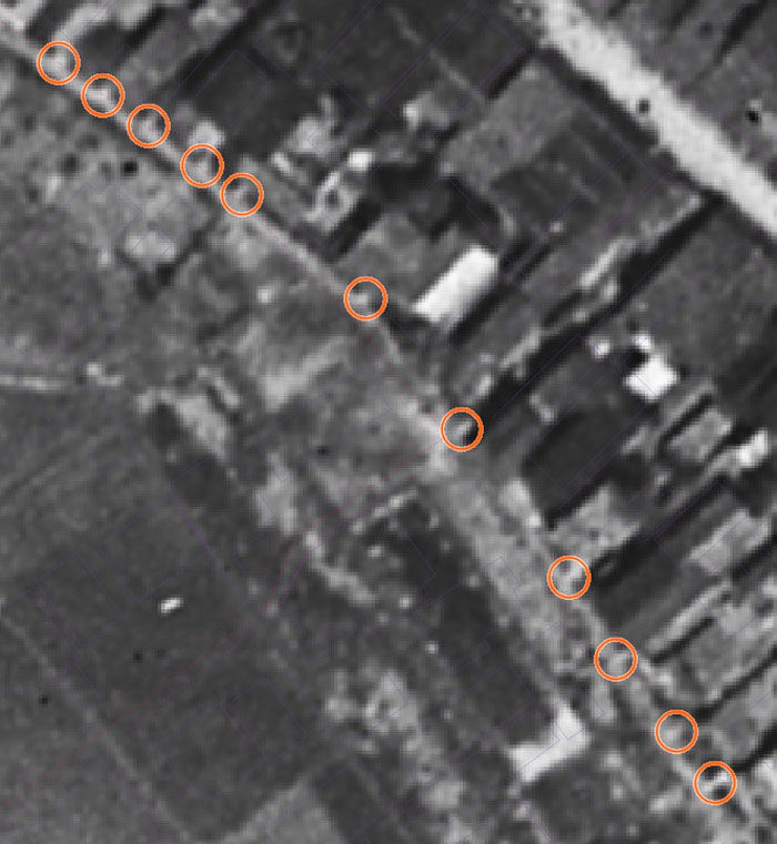そこで昭和23年(1948)の航空写真をよく観察してみます。