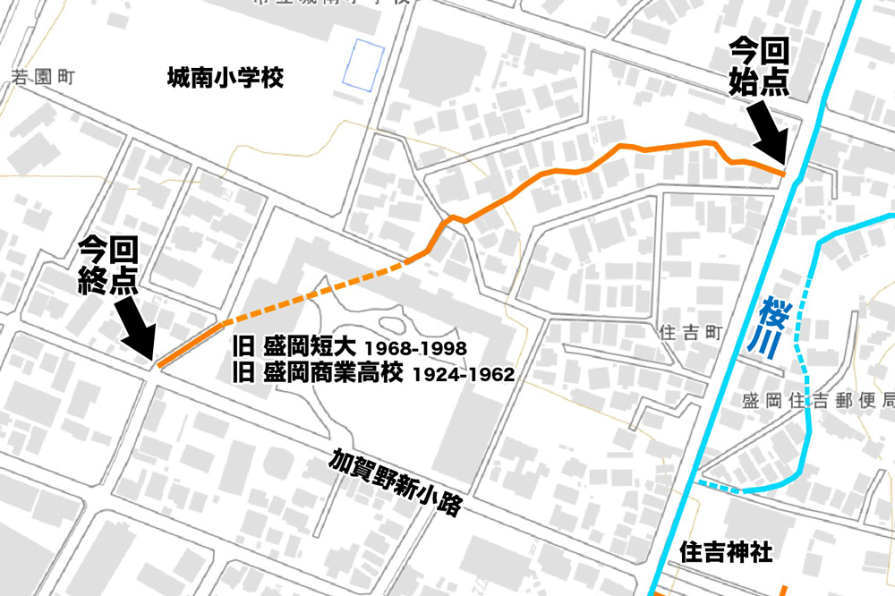 ここはなんとも不思議な雰囲気の場所でした。奥に伸びる水路跡が、空き地なのか、道なのか。入っていいのか、だめなのか、いろいろ考えさせられます。