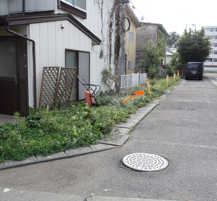 4年ぶりの訪問。木製街灯柱は、いまだ健在なれども、草木の生い茂りは増しています。素直に区画の反対側へ回り込みます。