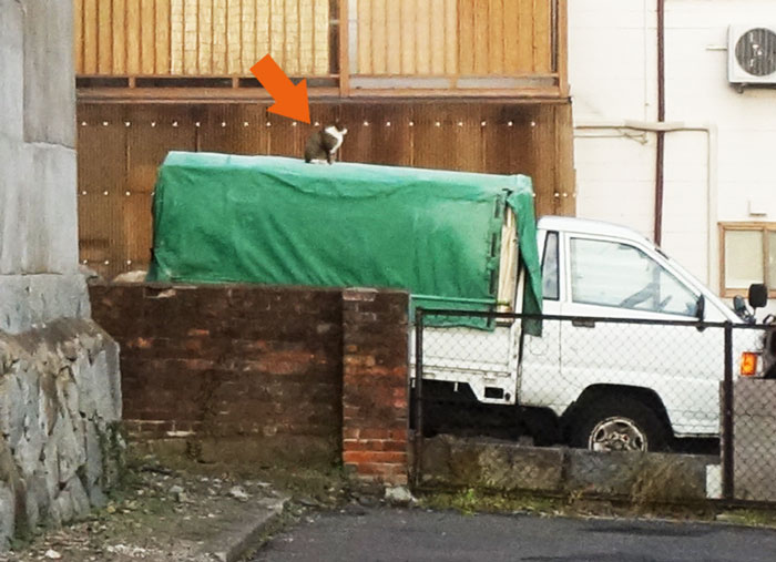 どうでもいいことですが、写真をチェックいていたら、トラックの上に猫がいたことに気が付きました。