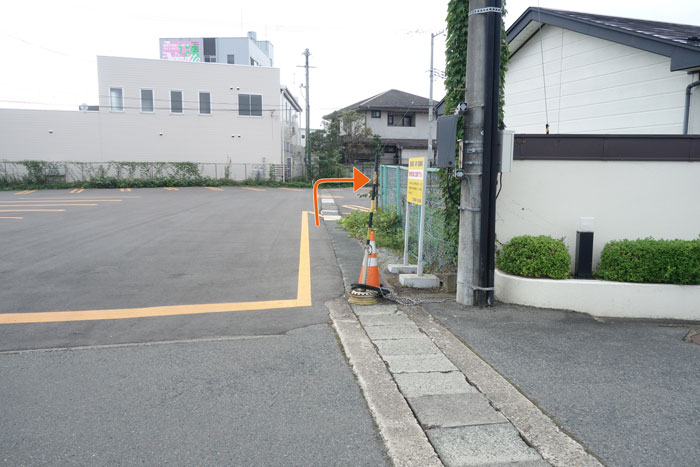 駐車場を抜けて