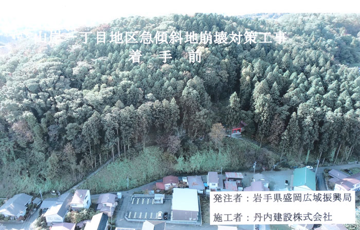 岩手県盛岡広域振興局・丹内建設株式会社により、「山岸一丁目地区急傾斜地崩壊対策工事」(PDFファイル)が行われていました。