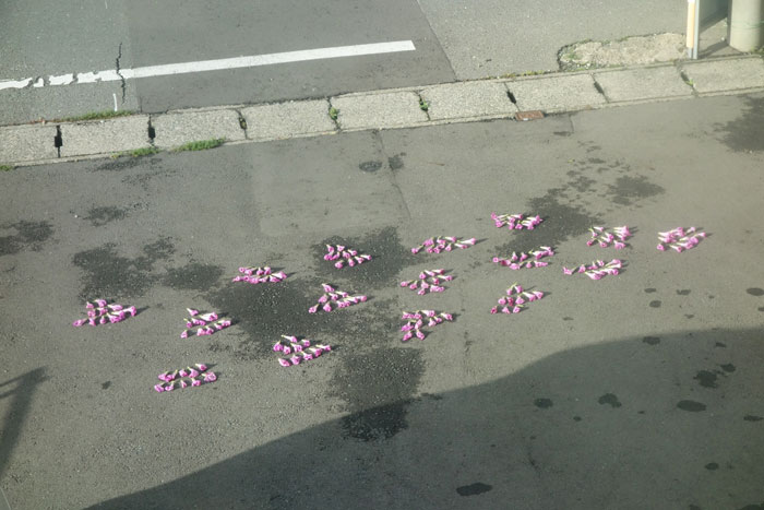 花の向きを交互にしながら直線に並べてみた。それだけ。