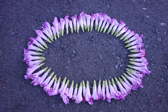 この密集型は、朝顔の花弁どうしがくっつくことで形を保っている。