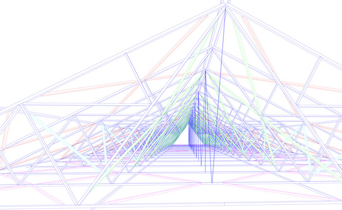 青部分が元の骨組み。その他が後設のブレースです。2008年当時、がんばって説明用に作った3Dデータが役に立つ時が来るとは。