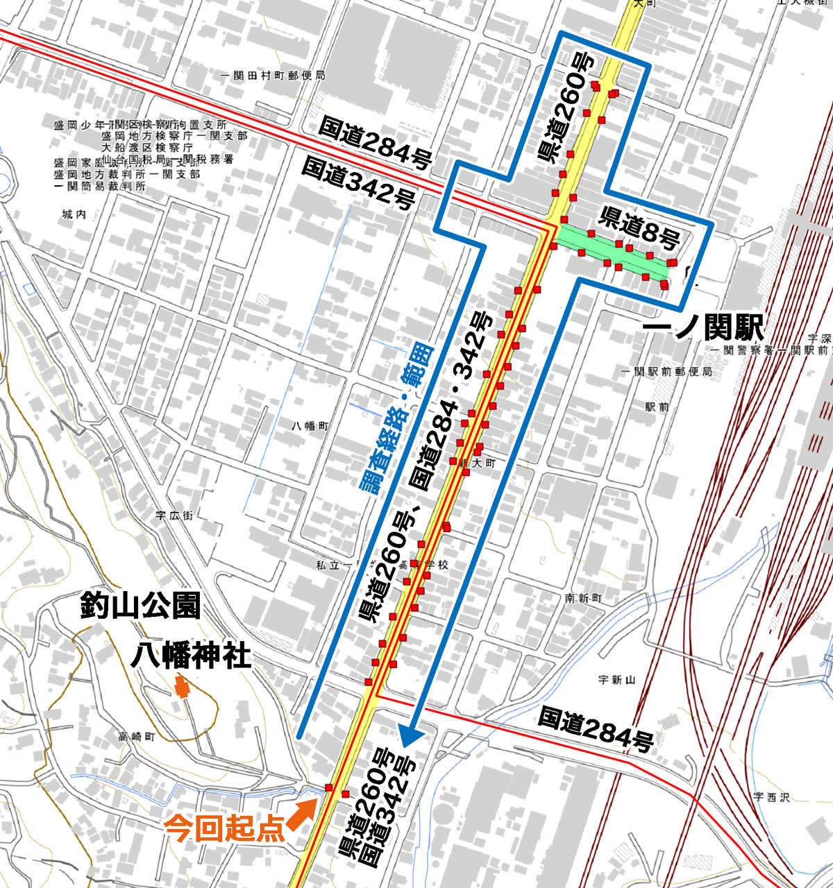 道路の向かい側を戻りつつ、県道8号に入り一ノ関駅方向に向かいます。