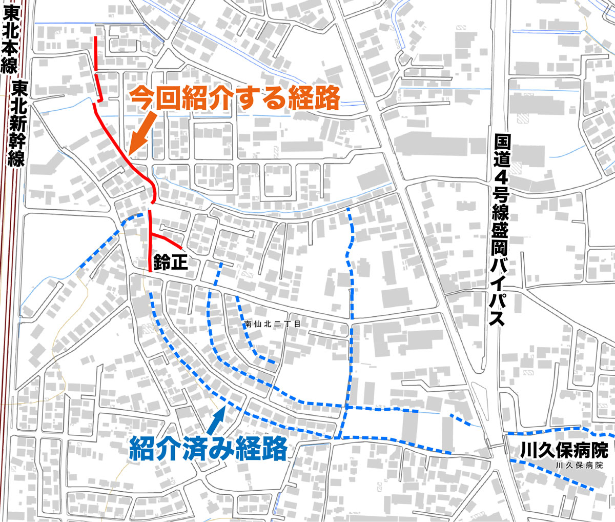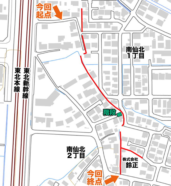 2021年3月に、津志田~南仙北を歩いた経路 の続きとなります。